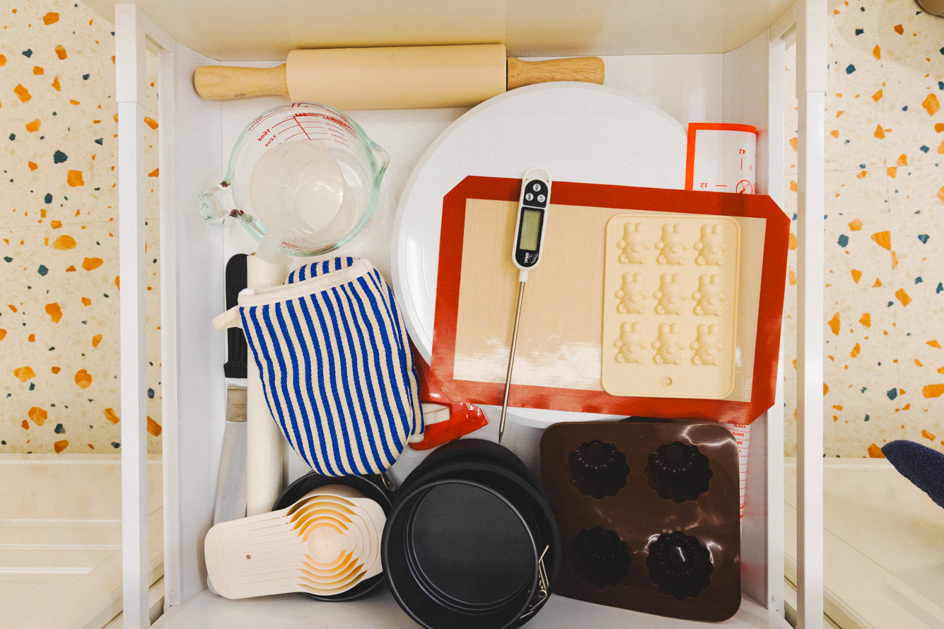 실제로 사용도 가능하도록 각종 조리 도구, 베이킹 도구, 식기류, 조리 기기를 알차게 준비해두었습니다.